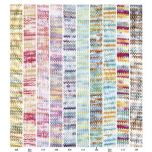 Härligt, mjukt bomullsgarn som är perfekt för de allra minsta. 200 grams nystan med härliga färger, tonade pastellövergångar på en vit bas. Skapa en babyfilt med endast ett nystan Mimosa eller sticka somriga plagg som ser ut som karameller.