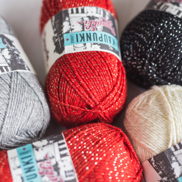 Kaupunkilankas Pyynikki är ett sockgarn med glittertråd för festligare sockor. Samma grovlek som sockgarnet Kivijalka