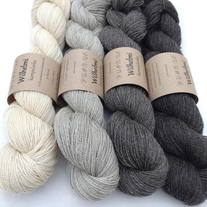 Vuonue sockgarner Pentti och Wilhelmi 70% av garnet är ull från finska får. Vuonues mål är att höja värdet på finsk (nordisk) kvalitetsull till dess värde och att alltid ha ull från fler gårdar tillgängliga, istället för att dessa ska slängas. Garnet är förstärkt med 30% tencel, vilket resulterar i att det håller bättre i sockor. Tencel är ett träfiber, ett naturligt material som tillverkas av eukalyptuscellulosa. Produktionen är FSC*-certifierad, vilket säkerställer att träråvara som används kommer från ett ansvarsfullt skogsbruk, det vill säga ett skogsbruk som tar hänsyn till människor och miljö. Eukalyptus växer snabbt och kan odlas i områden som inte är lämpliga för livsmedelsproduktion. Ull och tencel passar perfekt med varandra, då de båda delar samma positiva egenskaper. De andas, för bort fukt från huden och absorberar den samtidigt som de avger värme. Tencel gör att garnet känns mer len och har aning lyster. Båda materialen är i sig antibakteriella, ekologiska och helt biologiskt nedbrytbara.